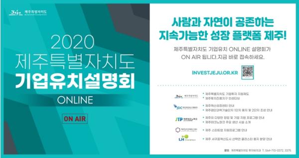 제주특별자치도는 12월 4일부터 1월 말까지 ‘2020 제주특별자치도 온라인 기업유치설명회’를 제주특별자치도 투자유치 홈페이지(investjeju.or.kr)를 통해 진행하고 있다고 밝혔다.