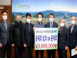 윤재호 상조 윤재호 대표가 지난봄에 이어 합천군 농축산물안정을 위한 기금을 합천군에 쾌척해 고향 합천 농민들에게 힘을 보탰다.