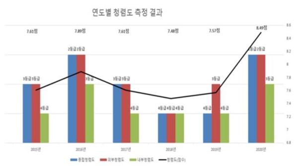 국민권익위원회는 9일 정부청사에서 580개 공공기관에 대한 2020년도 외부청렴 내부청렴도를 측정한 종합청렴도를 발표했다.