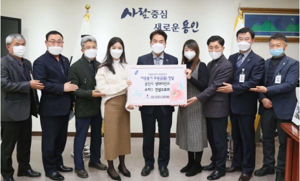 용인시는 14일 시청 생태하천과와 수지구 건설도로과 직원들이 시장실을 방문해 경기도로부터 받은 포상금 1천만원을 어려운 이웃에게 써달라며 기탁했다고 밝혔다.