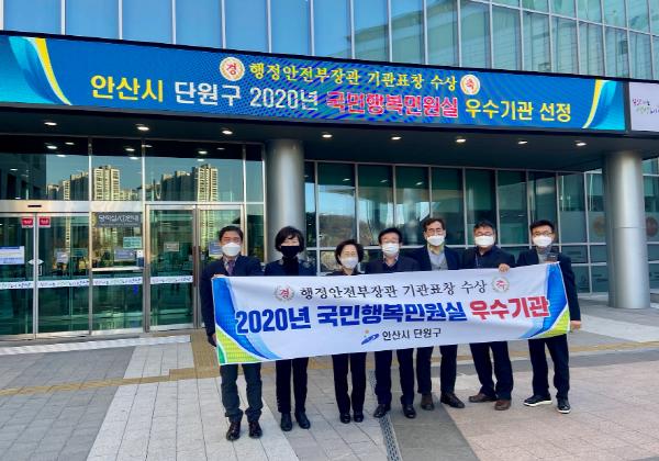 안산시 단원구는 구청 현관에서 ‘2020년 국민행복민원실 우수기관 인증’ 현판식을 개최했다고 15일 밝혔다.