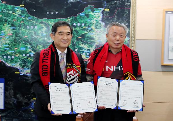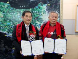 하동군이 프로축구구단 경남FC와 지역 스포츠산업 발전을 위해 손을 잡았다. 하동군은 14일 오후 군수 집무실에서 윤상기 군수와 박진관 경남FC 대표이사가 양 기관의 상호발전을 위한 업무협약을 체결했다고 15일 밝혔다.