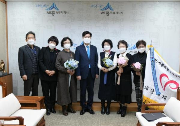 세종특별자치시(시장 이춘희)는 지난 14일 시장 집무실에서 ‘2020년 대한민국 자원봉사대상’ 정부포상 전수식을 개최했다고 밝혔다.