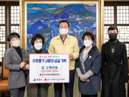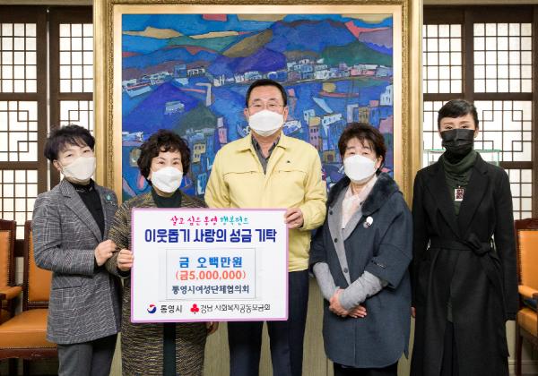 통영시여성단체협의회(회장 황영숙)는 12월 11일 통영시를 방문해 연말연시 이웃돕기 사랑의 성금으로 500만원을‘살고싶은 통영 행복펀드’에 기탁했다.