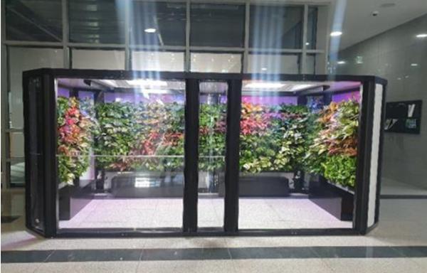 창원시가 근로환경 개선과 미세먼지 저감을 위해 산업단지 입주 기업 내에 지능형 실내정원 (스마트 가든)을 설치하고 있어 눈길을 끌고 있다.
