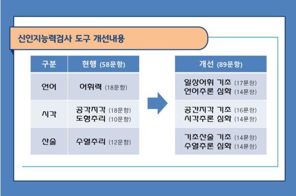 검사문항은 기존 58문항에서 89문항으로 확대하여 경계선 지능 수준을 선별하는데 중점을 두었다.