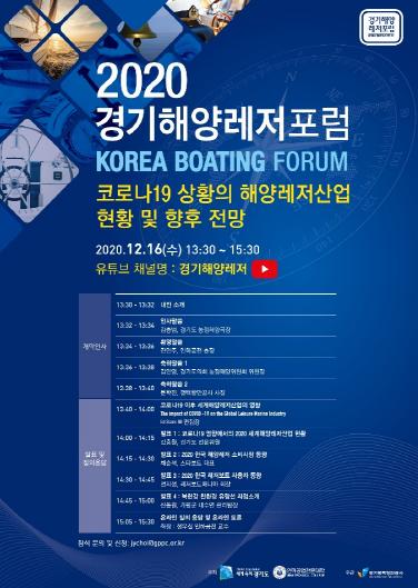 해양레저산업의 지속 성장을 도모하기 위한 대표적인 해양레저포럼인 '2020 경기해양레저포럼'이 16일 오후 1시 30분 개최된다. 유튜브 ‘경기해양레저’ 채널을 통해 생중계된다.