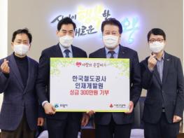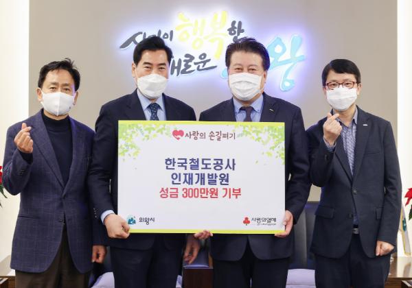 한국철도공사 인재개발원(원장 이규영)에서 15일 연말을 맞아 어려운 이웃을 위해 사용해달라며 성금 300만원을 의왕시에 기부했다.