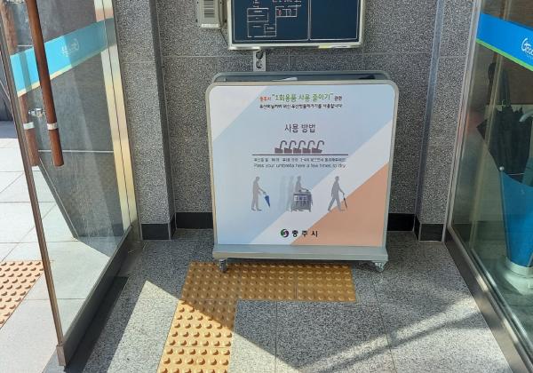 시는 지난 2018년 충주시청에 친환경 우산 빗물제거기를 시범 설치해 운영한 바 있다.