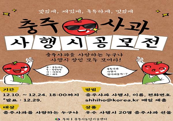 충주시농업기술센터은 충주사과 사행시 공모전이 진행 중이라고 밝혔다.
