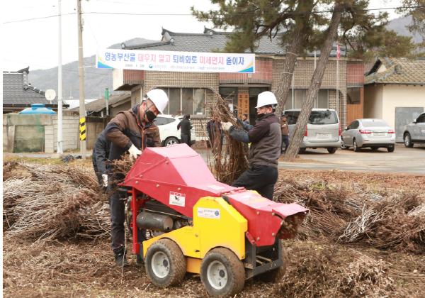 논산시농업기술센터는 2차 미세먼지 계절관리제 기간(2020. 12월~2021. 3월)에 발생하는 농업분야 미세먼지 발생량을 줄이기 위해 마을단위 영농부산물 파쇄작업을 지원한다.