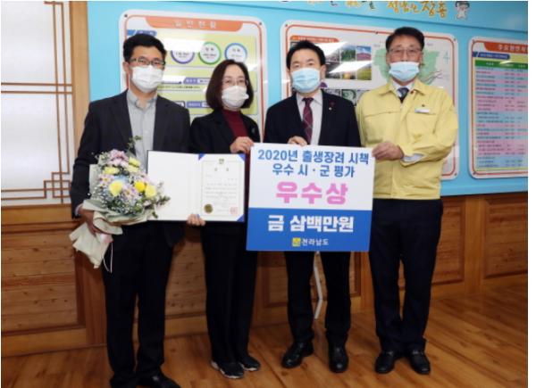장흥군이 전라남도에서 실시한 ‘2020년도 시·군 저출생 대책 우수사례 평가’에서 ‘우수 기관상’을 수상했다.
