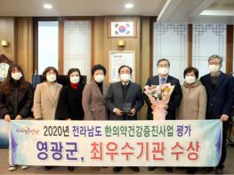 영광군은 2020년 한의약건강증진사업이 전라남도 평가에서 최우수기관으로 선정되었다고 밝혔다.