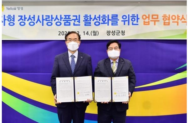 장성군과 한국조폐공사가 14일, 장성군청 2층 상황실에서 전자형(카드, 모바일) 장성사랑상품권 도입을 위한 업무 협약을 체결했다. 협약식은 방역수칙이 철저히 준수되는 가운데, 유두석 장성군수와 한국조폐공사 조용만 사장, 관계자 등 최소 인원만 참석했다.