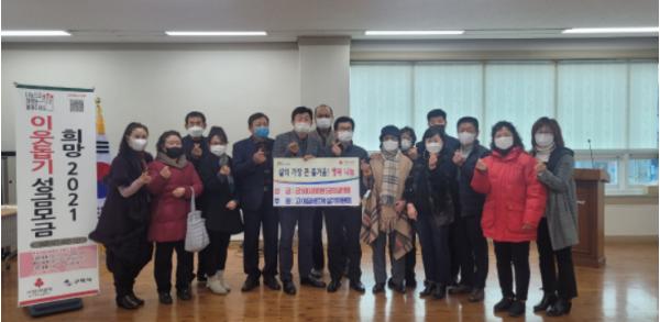 구미시 고아읍에서는 12월 14일 고아읍 바르게살기위원회에서 고아읍행정복지센터를 방문하여 이웃돕기 성금 50만원을 기탁하며, 이웃을 위한 나눔으로 희망을 이어갔다.