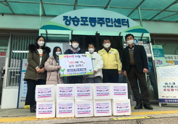 장승포초등학교 학생들과 교직원들은 그동안 열심히 가꾼 배추로 김장김치를 만들어 장승포동 주민센터(동장 윤봉환)로 전달해 왔으며, 아이들이 사랑이 담긴 김장김치는 홀로 사시는 어르신들께 전달되었다.