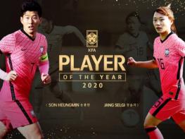 손흥민(28, 토트넘 홋스퍼)과 장슬기(26, 인천현대제철)가 2020년 KFA 올해의 선수로 선정됐다. 올해의 골로는 조규성(22, 전북현대)이 지난 1월 AFC U-23 챔피언십 이란전에서 터뜨린 왼발 중거리슛 골이 선정됐다.