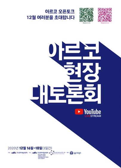 한국문화예술위원회(위원장 박종관)는 12월 16일부터 18일까지 '2020년 아르코 현장 대토론회'를 온라인으로 개최한다.