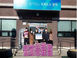 평택시 포승읍 소재 농업회사법인 (주)남양농산(대표 신도철)은 15일 연말을 맞아 코로나19로 경제적 어려움을 겪고 있는 이웃을 위해 경기미 10㎏ 50포를 평택시 안중출장소에 기탁했다. 기탁된 경기미 10㎏ 50포는 평택 서부권역 오성면?현덕면 지역의 저소득 50가구에게 전달된다.