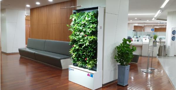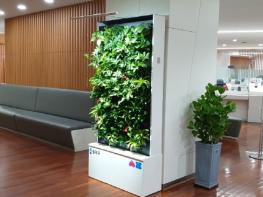 이번에 설치된 수직정원은 흙이 아닌 무기물질을 사용하여 식물의 부패 및 악취를 최소화하고, 내부 센서를 통한 실내 환경 측정·분석 및 원격 관리가 가능한 것이 특징이다.
