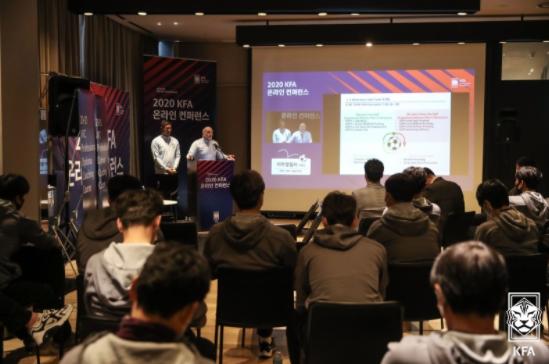 11일 울산 신라스테이호텔에서 2020 KFA 온라인 컨퍼런스가 개최됐다. KFA는 매년 지도자 대상 컨퍼런스를 진행해 한국축구의 현재를 돌아보고 현대축구의 흐름을 짚어보는 시간을 가져왔다. 올해는 코로나19 확산방지를 위해 비대면 온라인 컨퍼런스가 진행됐다. P급 지도자 교육 수강생들은 현장에서 참여하고 나머지 지도자들은 온라인을 통해 실시간으로 강연자들과 소통하며 질의응답 방식으로 컨퍼런스에 참여했다.