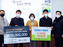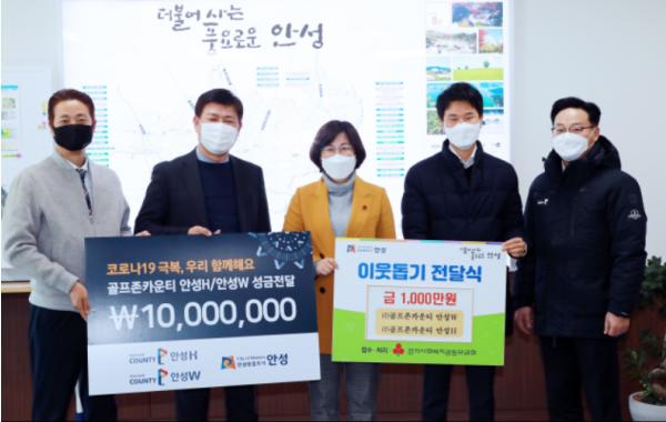 ㈜골프존카운티 안성W·안성H는 코로나19로 어려운 시국이지만 저소득 아동들을 위해 나눔 활동을 하며 따뜻한 온정을 전하는 기업으로, 매년 양성면과 보개면에 지정기탁을 하는 등 꾸준히 나눔 활동에 앞장서고 있다.