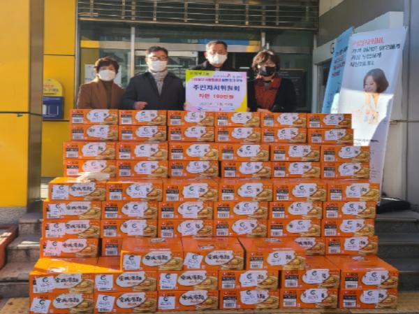 의정부시 의정부1동 주민센터는 의정부1동 주민자치위원회가 12월 14일 의정부 범시민 사랑 나눔 운동 ‘100일간 사랑릴레이 배턴잇기 운동 창구에 100만 원 상당의 라면 82상자를 기탁했다고 밝혔다.
