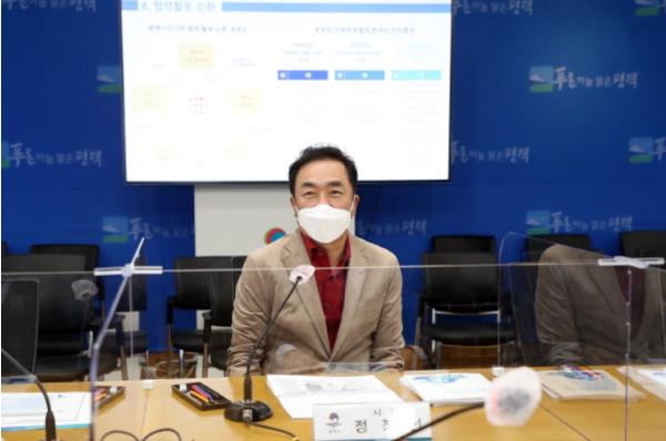 평택시는 지난 15일 정장선 시장, 시의원, 이상훈 협치공동의장 등 최소인원만 참석한 가운데 ‘평택시 시민사회 협력모델개발 연구용역’최종 보고회를 진행했다고 밝혔다.