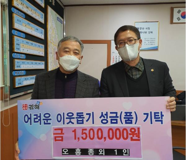 지난 15일 동상동의 오흥종 통장님과 익명을 요구한 기탁자 한 분이 동상동행정복지센터를 방문하여 이웃돕기 성금 50만원, 100만원씩 총 150만원을 기탁하였다.