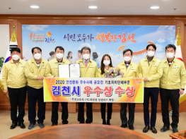 특히, 올해는 신종 코로나바이러스 감염증(코로나-19)이 확산되자 코로나19 예방홍보단 운영, 자원봉사 및 민간자원 참여와 드라이브스루 선별 진료소 운영 등 신속한 대응과 예방활동에 대한 노력도 인정받았다. 이번 수상으로 김천시는 재난안전 특별교부세 1억5천만원 인센티브를 지원 받는다.