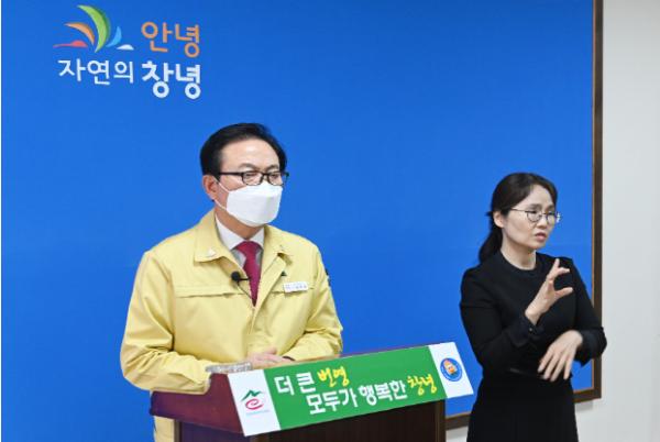 창녕군은 16일 서면 브리핑을 통해 코로나19 확진자가 2명 추가로 발생했다고 밝혔다.