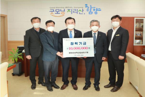 (사)함양군장학회는 16일 함양산청축산업협동조합(이하 함양산청축협)으로부터 장학금 1,000만원을 기탁받았다고 밝혔다.