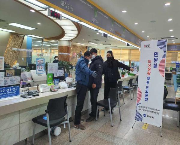 김해시는 지난 12월 16일 시청 민원실에서 공무원, 경찰, 청원경찰이 참여한 가운데 폭언, 폭력 행사 등 특이민원 발생 상황을 대비한 비상대응 모의훈련을 실시했다고 밝혔다.