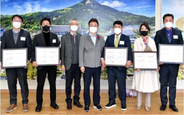 경상북도는 15일 도청 접견실에서 『2020년 경북프라이드(PRIDE)기 업』에 선정된 5개사에 대해 인증서를 수여했다.