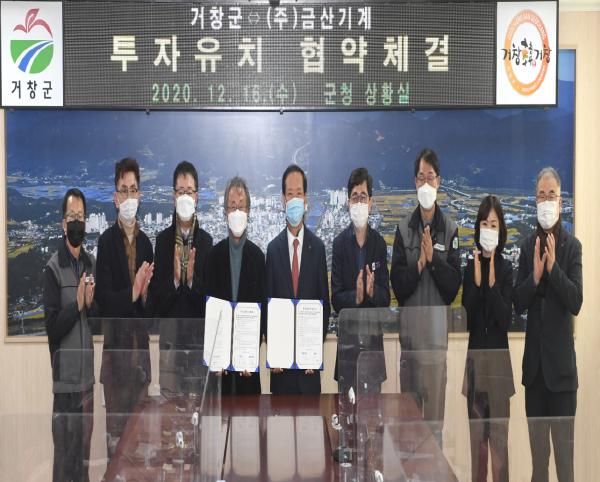 군과 투자협약을 맺은 ㈜금산기계는 1단계로 거창승강기전문농공단지 12,425㎡ 부지에 24억 원을 투자해 제조시설을 구축하고 13명의 직원을 고용할 계획이며, 2단계로 10억 원을 추가 투자하고 20여 명의 직원을 고용할 예정이다.