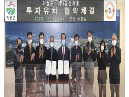 이날 투자협약은 코로나19 확산에 따라 구인모 거창군수와 ㈜금산기계 조수현 대표 등 회사 관계자 최소 인원이 참석한 가운데 개최됐다.