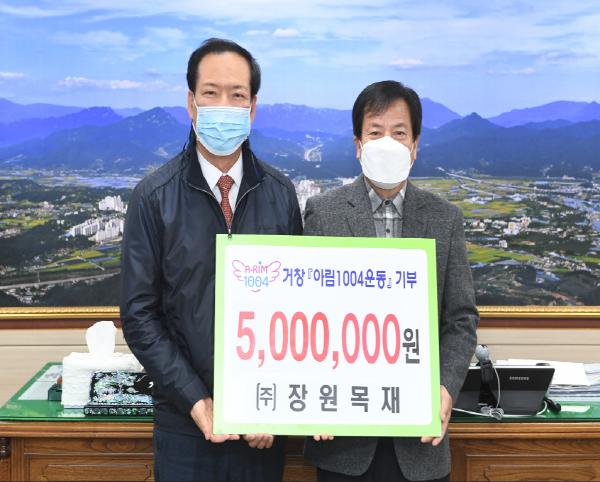 ㈜장원목재(대표 장원석)에서는 16일 아림1004 후원금 500만 원을 기탁했다.