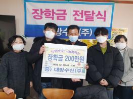 부산광역시 서구 암남동 대방수산(주)은 지난 16일 지역 학생 4명을 대상으로 장학금 200만원(각 50만원)을 전달하였다.
