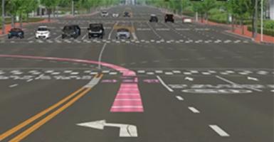 고령운전자가 교차로에서 좌회전 시 대향차량을 쉽게 인지할 수 있도록 분리형 좌회전차로를 설치하고, 교차로를 사전에 인지하기 위한 반응시간을 상향(6→10초)하여 교차로에서 돌발상황을 보다 여유롭게 대처할 수 있도록 하였다.