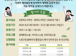 서울 노원구가 다가오는 겨울방학을 다양한 체험활동으로 알차게 보낼 수 있는 ‘노원N스쿨’을 운영한다고 밝혔다.