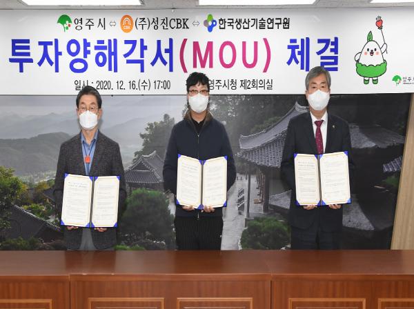 영주시는 지난 16일 오후 5시 영주시청 제2회의실에서 주식회사 성진CBK, 한국생산기술연구원과 베어링 제조 공장 설립을 위한 투자양해각서(MOU)를 체결했다.