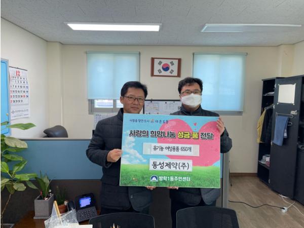 이날 전달식에 참석한 ㈜동성제약 관계자는 “코로나19로 경제적으로 모두가 힘들지만 이런 때일수록 어려운 이웃을 먼저 보살피는 것이 필요하며, 오늘 후원한 여성용품이 어려운 이웃들에게 작은 도움이 되길 바란다.”고 전했다.
