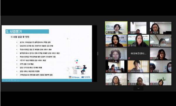 경기도 여성비전센터가 단국대학교 산학협력단에 위탁해서 운영하는 ‘경기도 가족상담소’가 16일 2020년 최종 성과보고회를 온라인으로 개최했다.