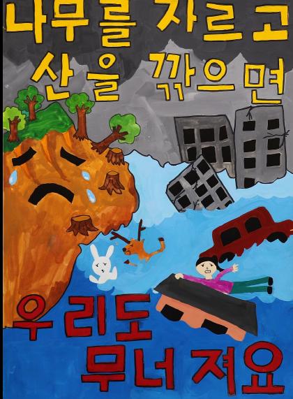 초등학생 부문에서 서부초등학교 3학년 이정주 학생은 재난의 시작이 난개발에 있다는 인식 아래 재난예방을 위한 근본적인 해결방안을 제시하는 “나무를 자르고 산을 깎으면 우리도 무너져요”라는 작품으로 최우수(대전광역시장상)을 받게 되었다.