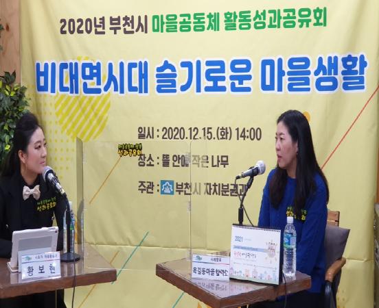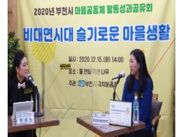 부천시는 지난 15일 오후 2시에 2020년 마을공동체 공모사업 활동 공유와 활동가 네트워크 구축을 위해 개최한 온라인 성과공유회를 성료했다고 밝혔다.