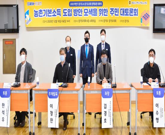 김경호 경기도의회 농정해양위원회 부위원장이 좌장을 맡은「농촌기본소득 도입 방안 모색을 위한 주민 대토론회」가 12월 16일 14시 경기도의회 4층 소회의실에서 개최됐다.