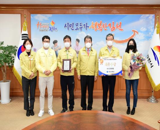김천시는 12월 15일 경상북도에서 시행된 ‘제2회 경상북도 수질오염총량관리 실태평가’에서 최우수상을 수상하였다. 김천시는 2019년도에 처음 실시한 제1회 오염총량실태평가에서 대상을 수상한 데 이어 올해 최우수 기관상을 수상하여 2년 연속 우수기관에 선정되었다.