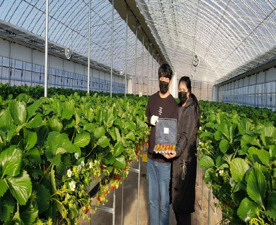 이번 사업으로 내재해성이 높은 트러스골조 광폭형 비닐하우스 1,320㎡를 신축, 딸기 양액재배 고설재배 베드, 스마트팜 시설 등을 근남면 산포리에 설치하였으며, 2020년 9월에 딸기를 정식 하여 12월부터 본격적으로 딸기를 출하 중이다.