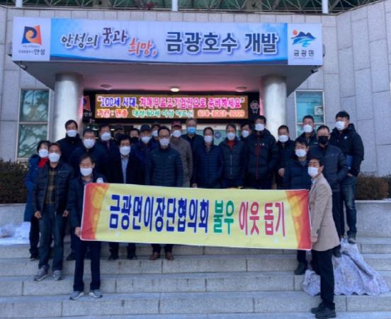 이에 홍봉기 금광면장은 “매년 명절과 연말에 이웃돕기 사랑과 나눔을 실천하시는 이장단협의회에 깊이 감사드린다”며 “이번 나눔을 통해 어렵고 추운 시기를 보내고 있을 주민분들이 따뜻한 연말을 보낼 수 있기를 바란다”고 말했다.