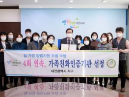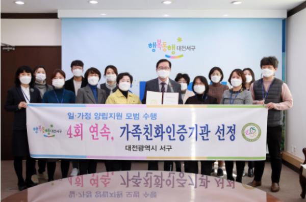 대전광역시 서구는 모범적인 가족친화경영으로 2012년 선정 이후 4회 연속 여성가족부 주관 가족친화 인증기관으로 선정됐다고 17일 밝혔다